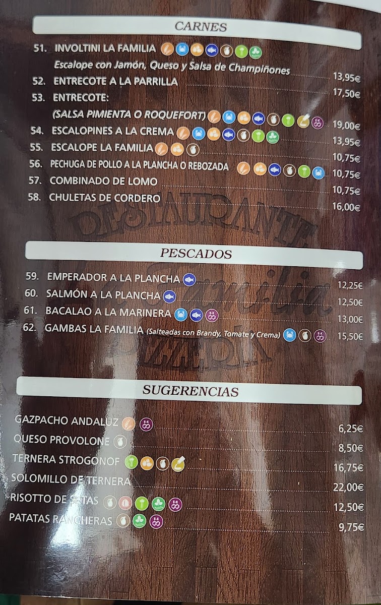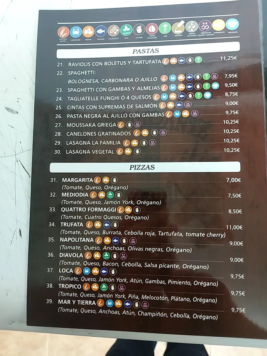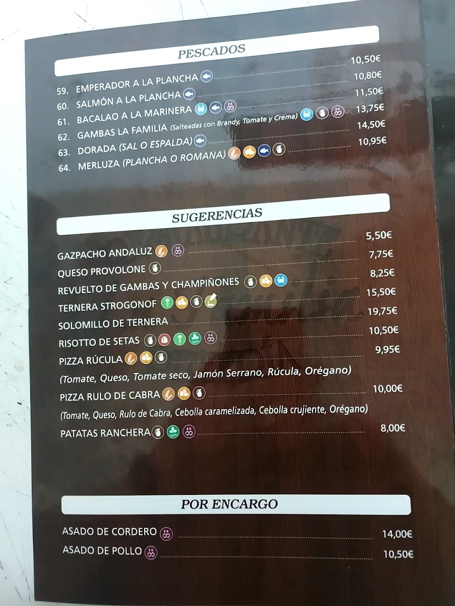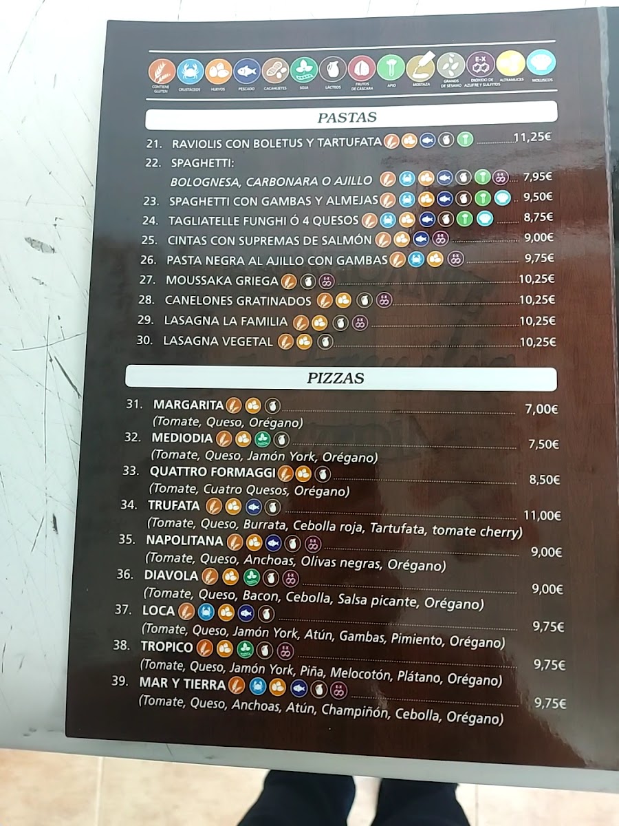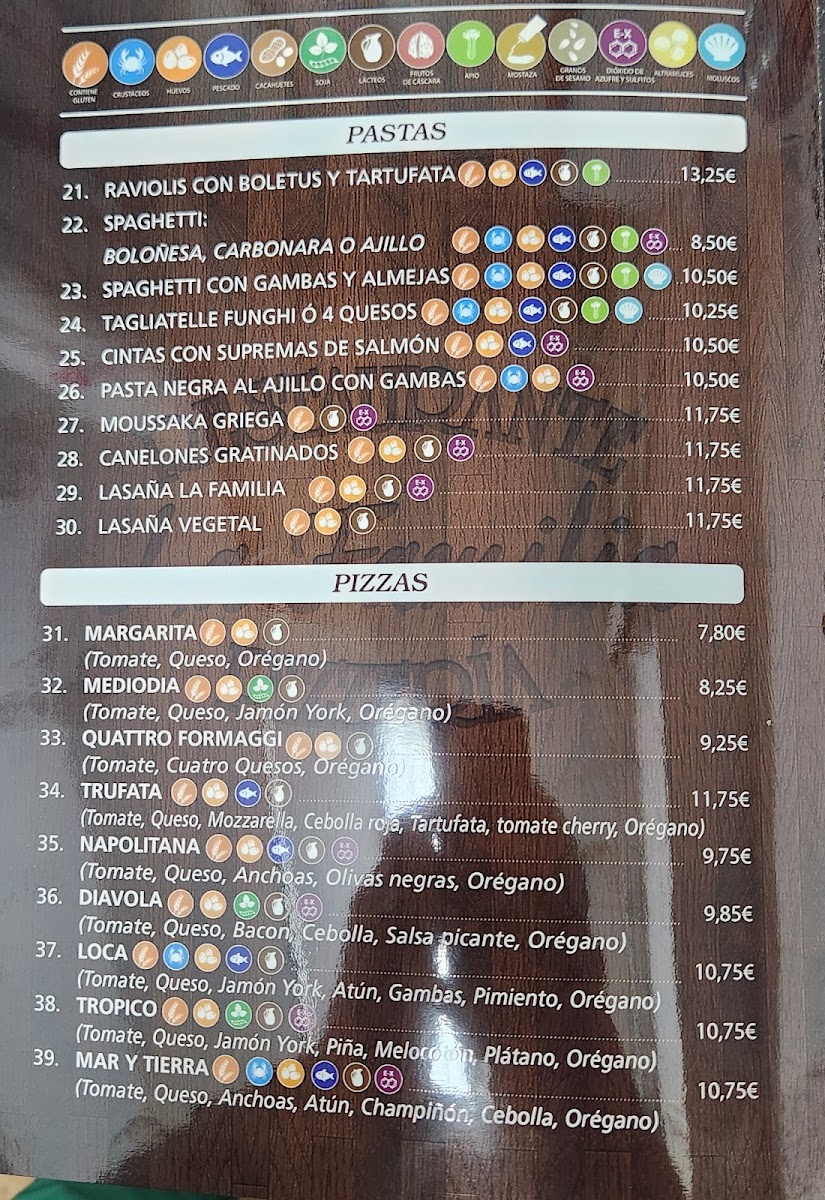 You’ll find an inviting variety that includes classics like Pizza Pepperoni and the signature Pizza la Familia, alongside Mediterranean favorites such as swordfish with fries and paella with rabbit. Lighter options like ensalada italiana or cintas con salmón fit comfortably into a relaxed lunch or early evening meal, while sweet finishes like lemon sorbet and tarta de queso offer a gentle close to the dining experience.
